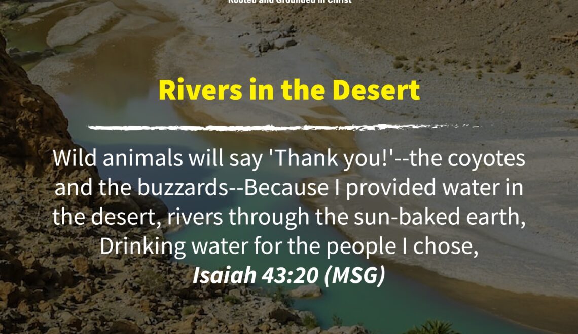 Wild animals will say ‘Thank you!’–the coyotes and the buzzards–Because I provided water in the desert, rivers through the sun-baked earth, Drinking water for the people I chose, Isaiah 43:20