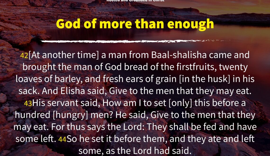 42[At another time] a man from Baal-shalisha came and brought the man of God bread of the firstfruits, twenty loaves of barley, and fresh ears of grain [in the husk]
