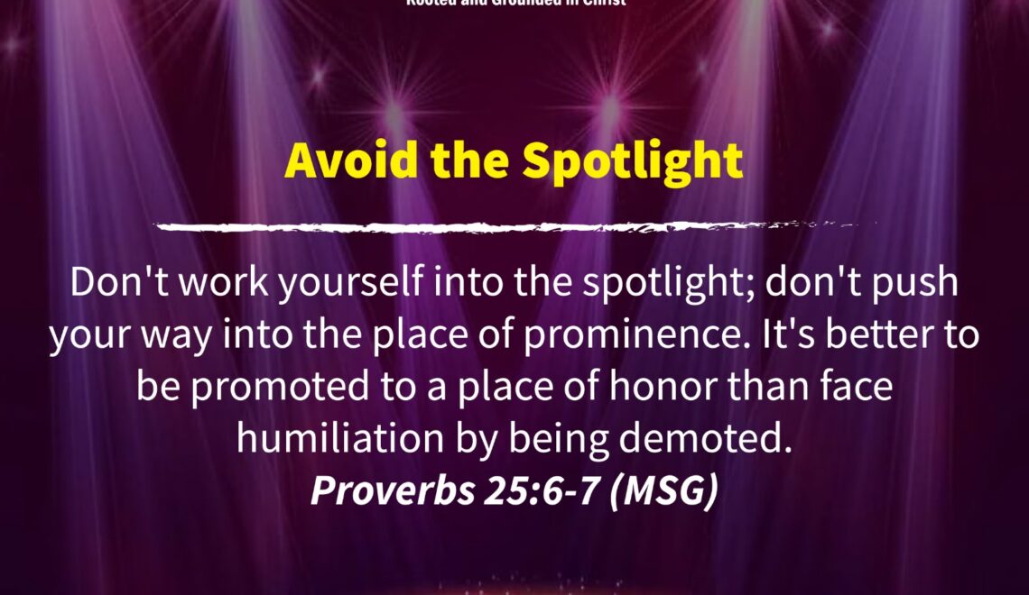 Don’t work yourself into the spotlight; don’t push your way into the place of prominence. It’s better to be promoted to a place of honor than face humiliation by being