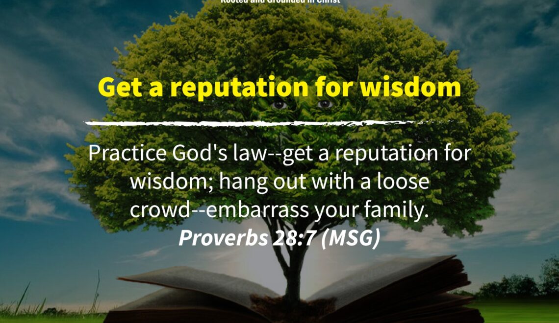 Practice God’s law–get a reputation for wisdom; hang out with a loose crowd–embarrass your family. Proverbs 28:7 (MSG) All the men and women in the Bible who got and had