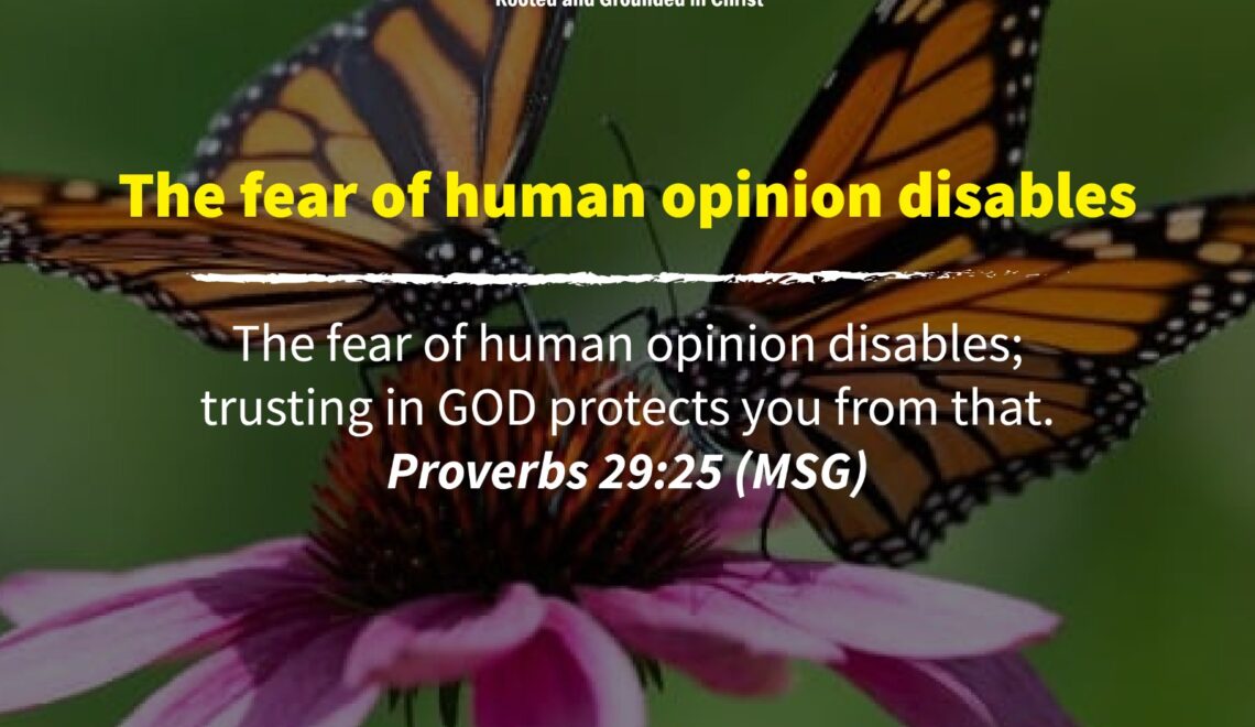 The fear of human opinion disables; trusting in GOD protects you from that. Proverbs 29:25 (MSG)You’re not the result of what people think or say. You’re God’s original thought and