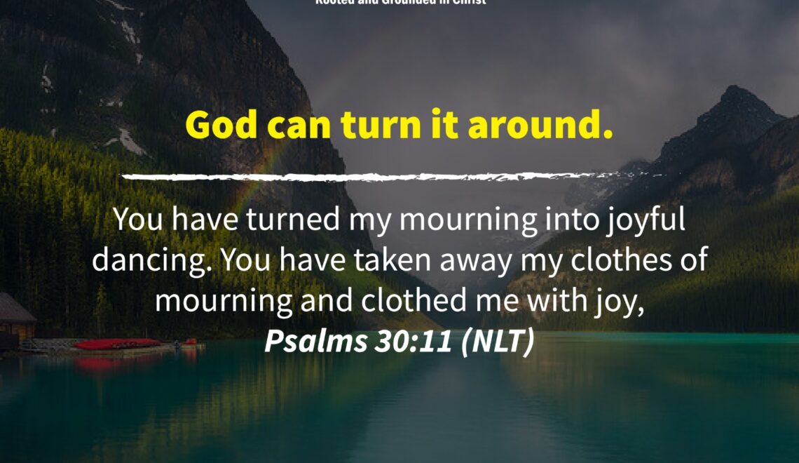 You have turned my mourning into joyful dancing. You have taken away my clothes of mourning and clothed me with joy, Psalms 30:11 (NLT) The farthest off course that we