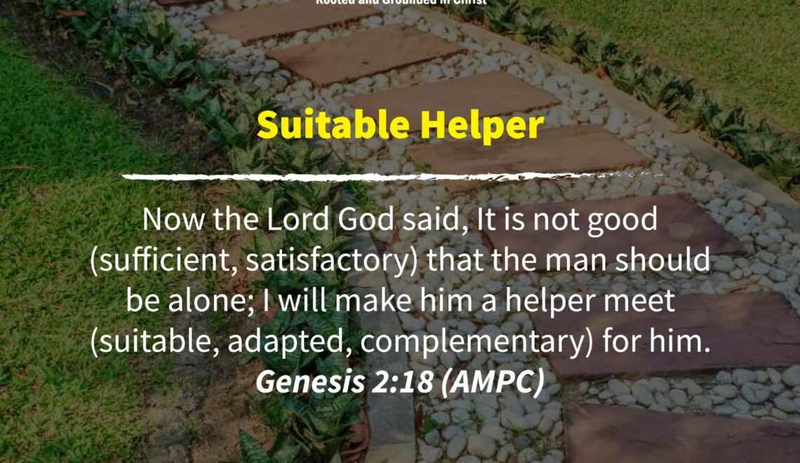 Now the Lord God said, It is not good (sufficient, satisfactory) that the man should be alone; I will make him a helper meet (suitable, adapted, complementary) for him. Genesis