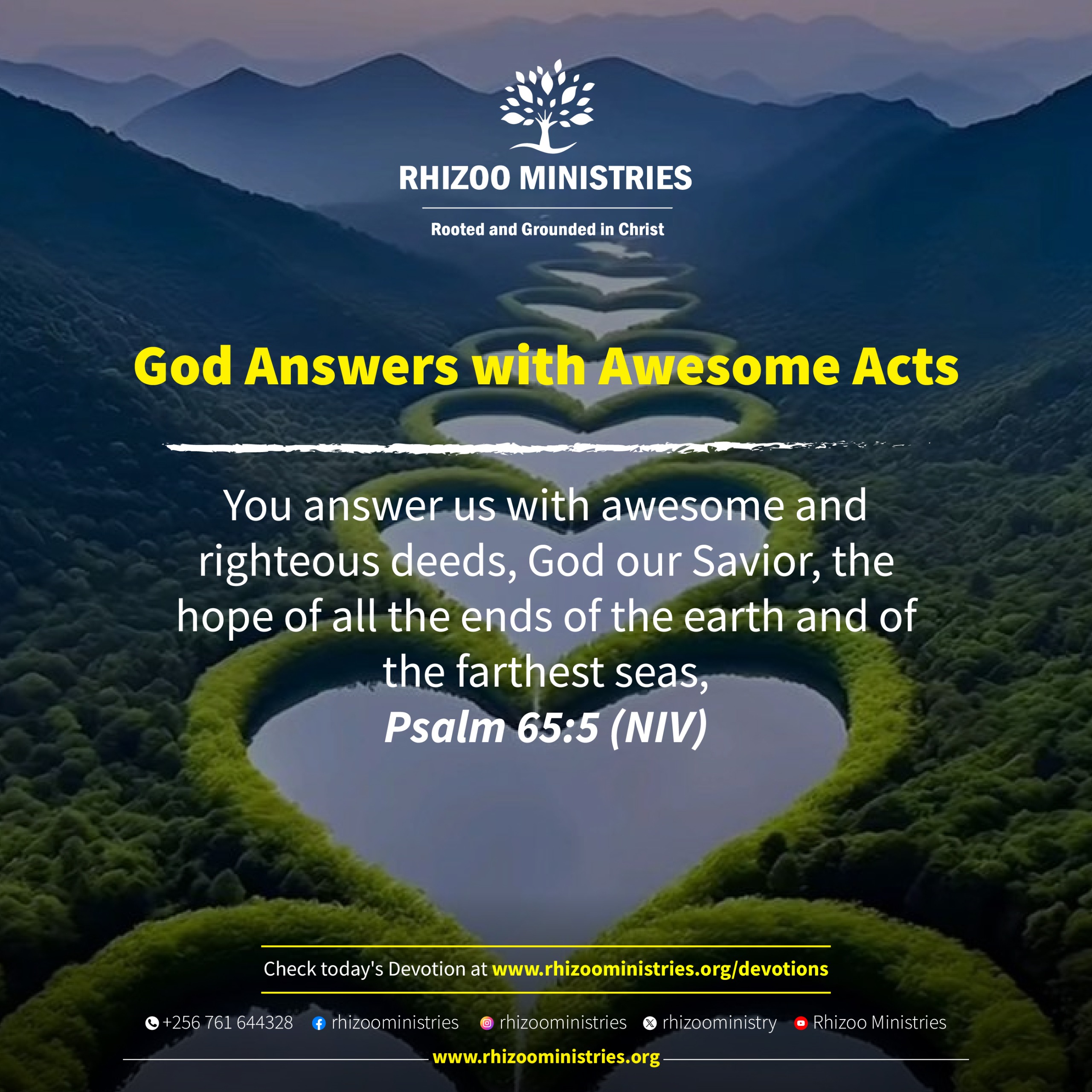 You answer us with awesome and righteous deeds, God our Savior, the hope of all the ends of the earth and of the farthest seas, Psalm 65:5 (NIV)