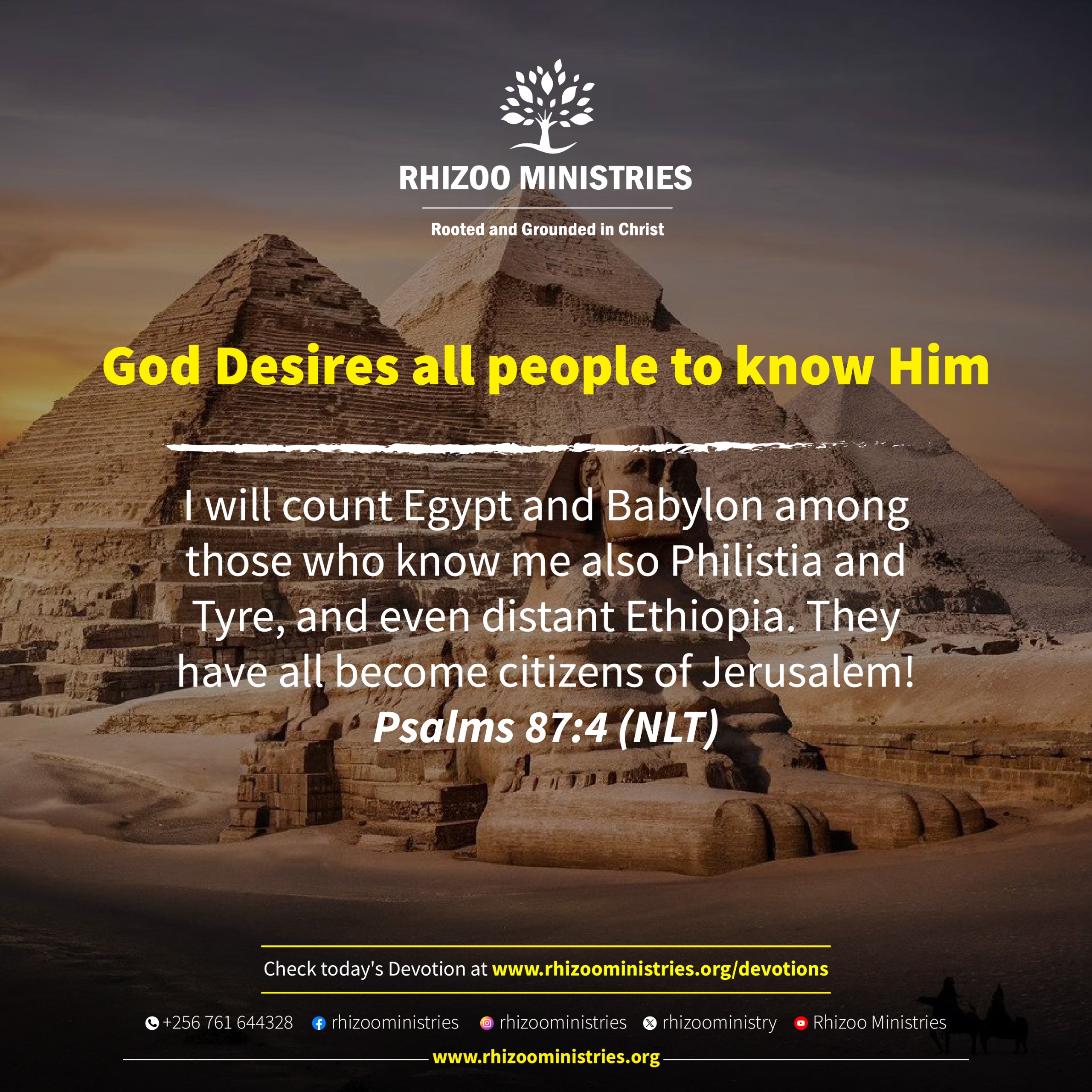 I will count Egypt and Babylon among those who know me also Philistia and Tyre, and even distant Ethiopia. They have all become citizens of Jerusalem! Psalms 87:4 (NLT)