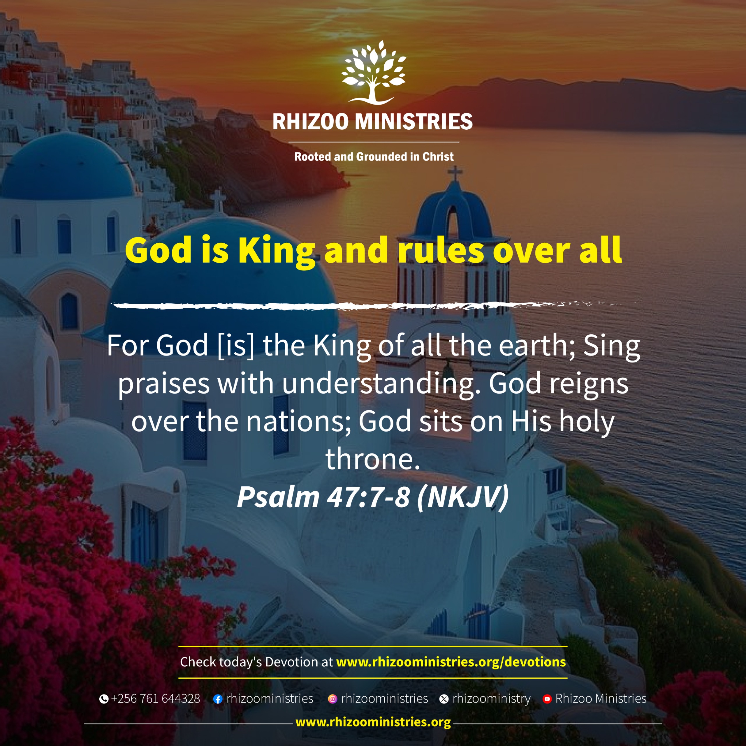 For God [is] the King of all the earth; Sing praises understanding. God reigns over the nations; God sits on His holy throne. Psalm 47:7-8 (NKJV)
