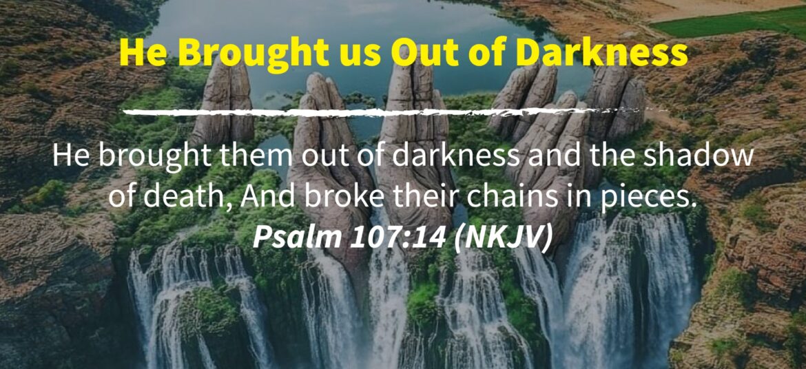 He brought them out of darkness and the shadow of death, And broke their chains in pieces. Psalm 107:14 (NKJV)