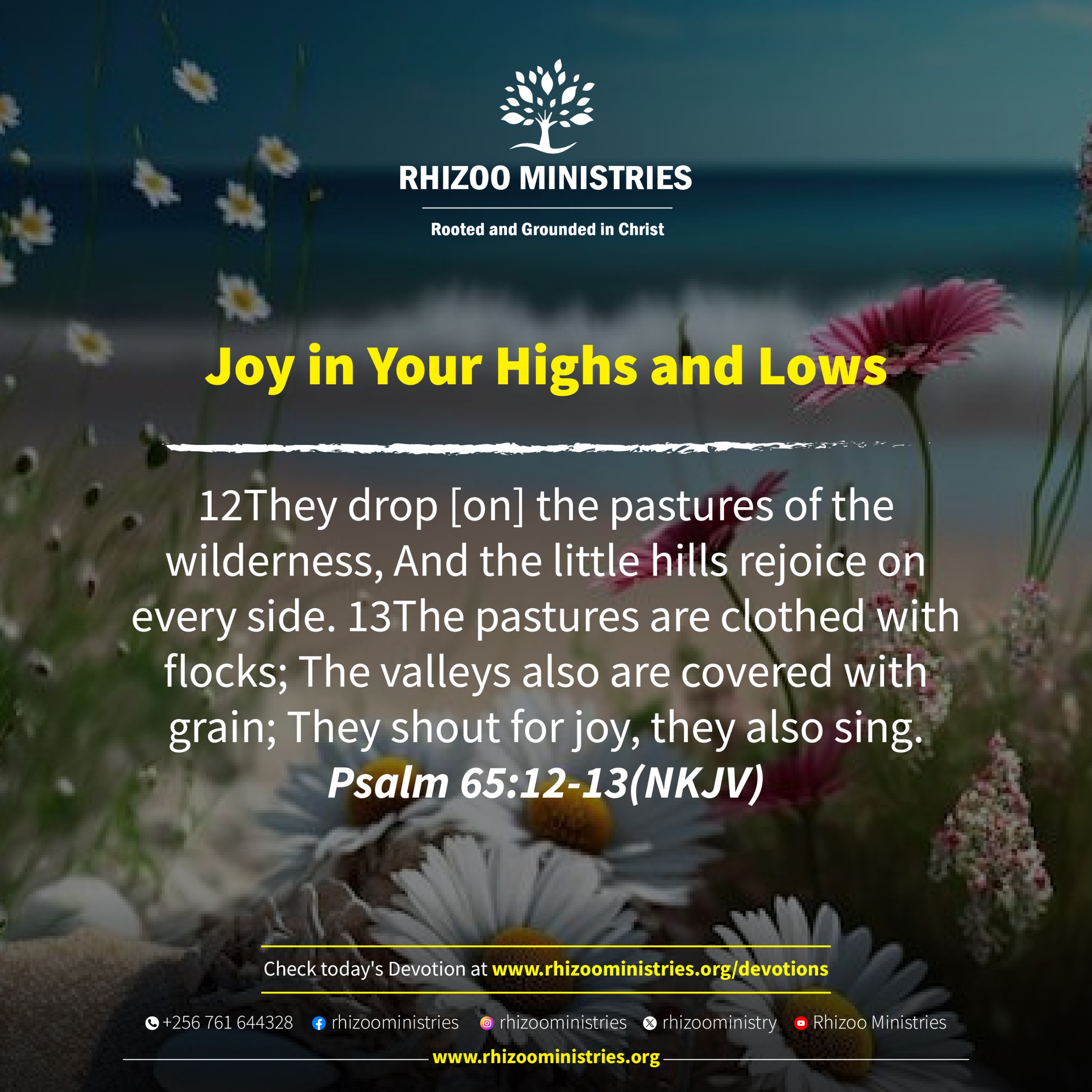 12 They drop [on] the pastures of the wilderness, And the little hills rejoice on every side. 13 The pastures are clothed with flocks; The valleys also are covered with grain; They shout for joy, they also sing. Psalm 65:12-13(NKJV)