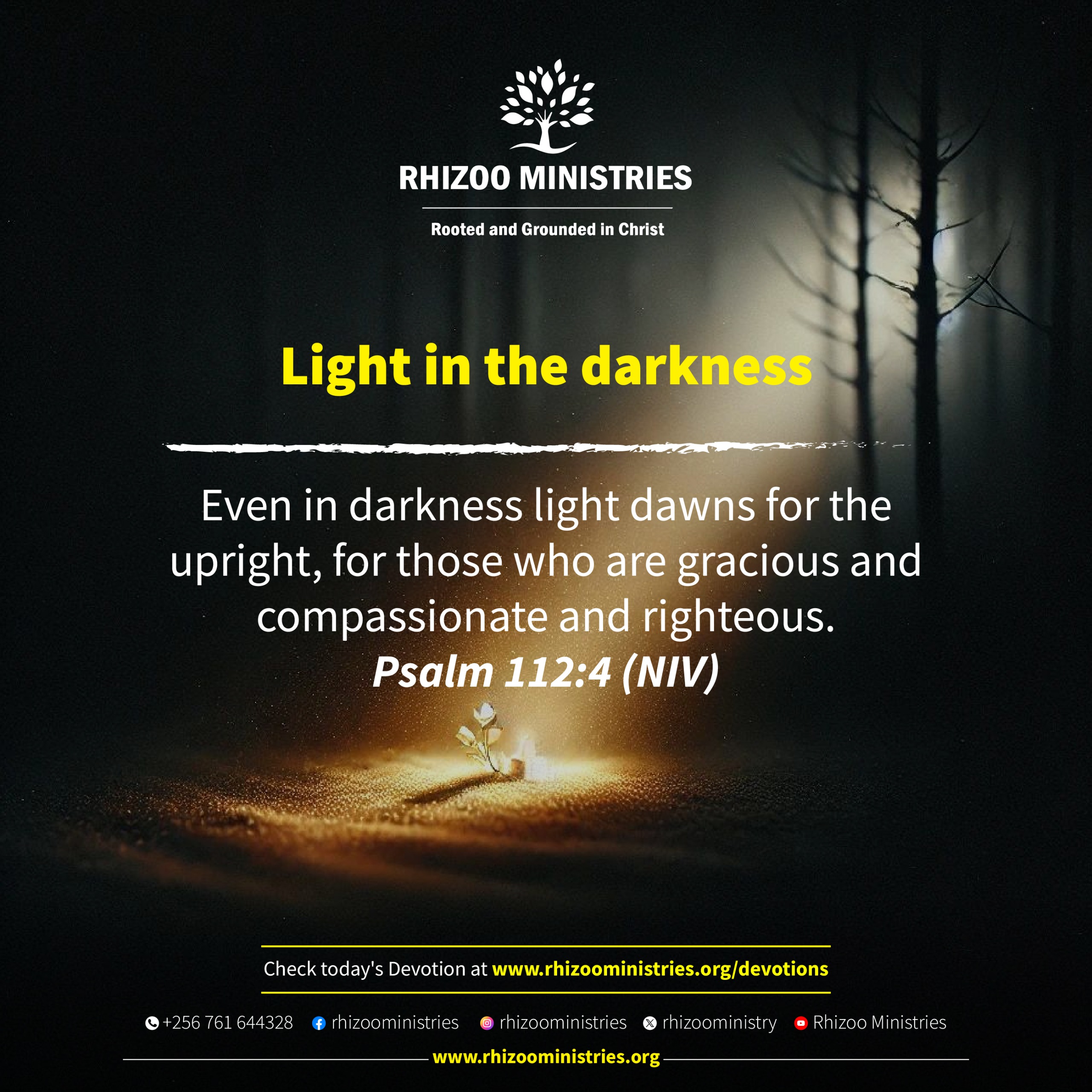 Even in darkness light dawns for the upright, for those who are gracious and compassionate and righteous. Psalm 112:4 (NIV)