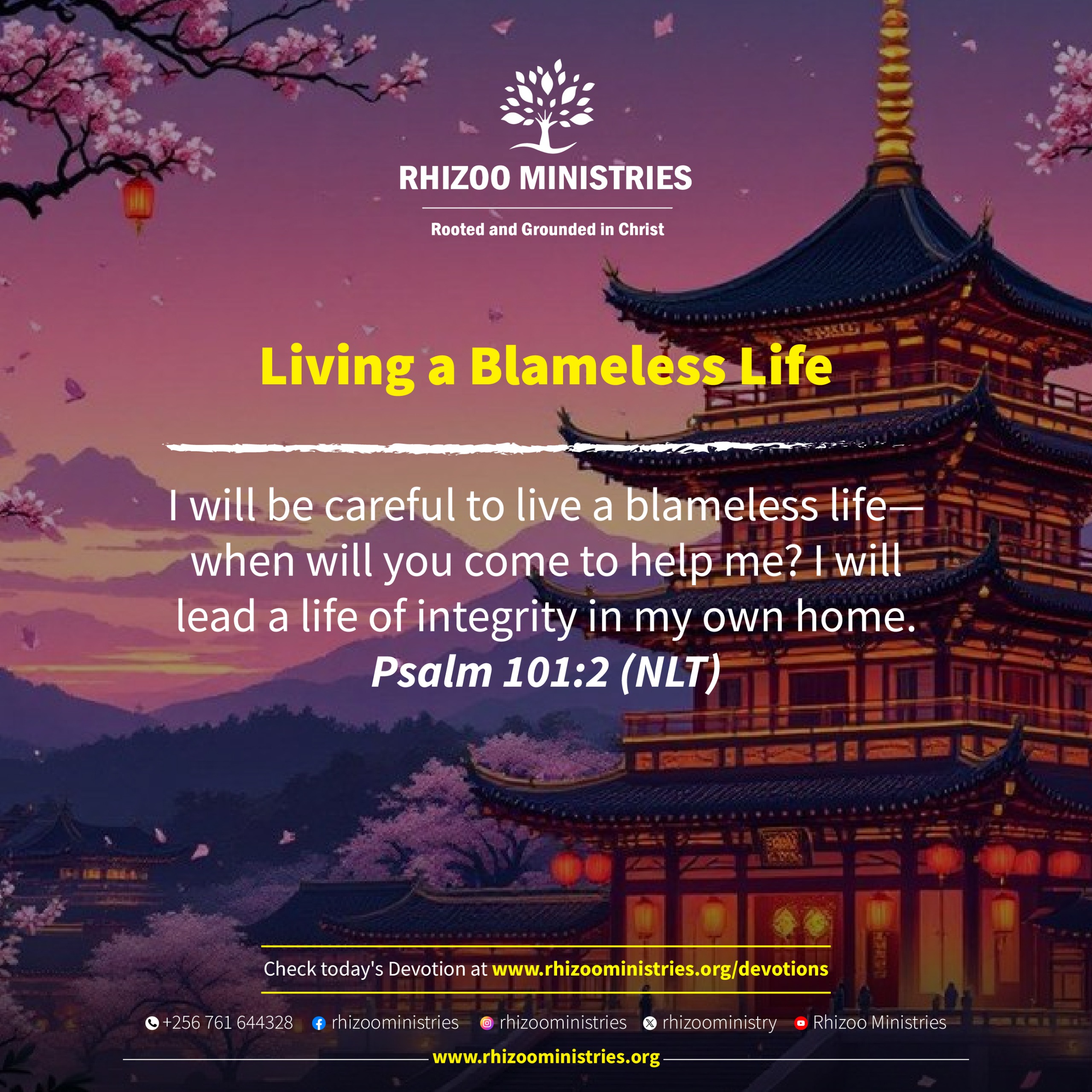 I will be careful to live a blameless life— when will you come to help me? I will lead a life of integrity in my own home. Psalm 101:2 (NLT)