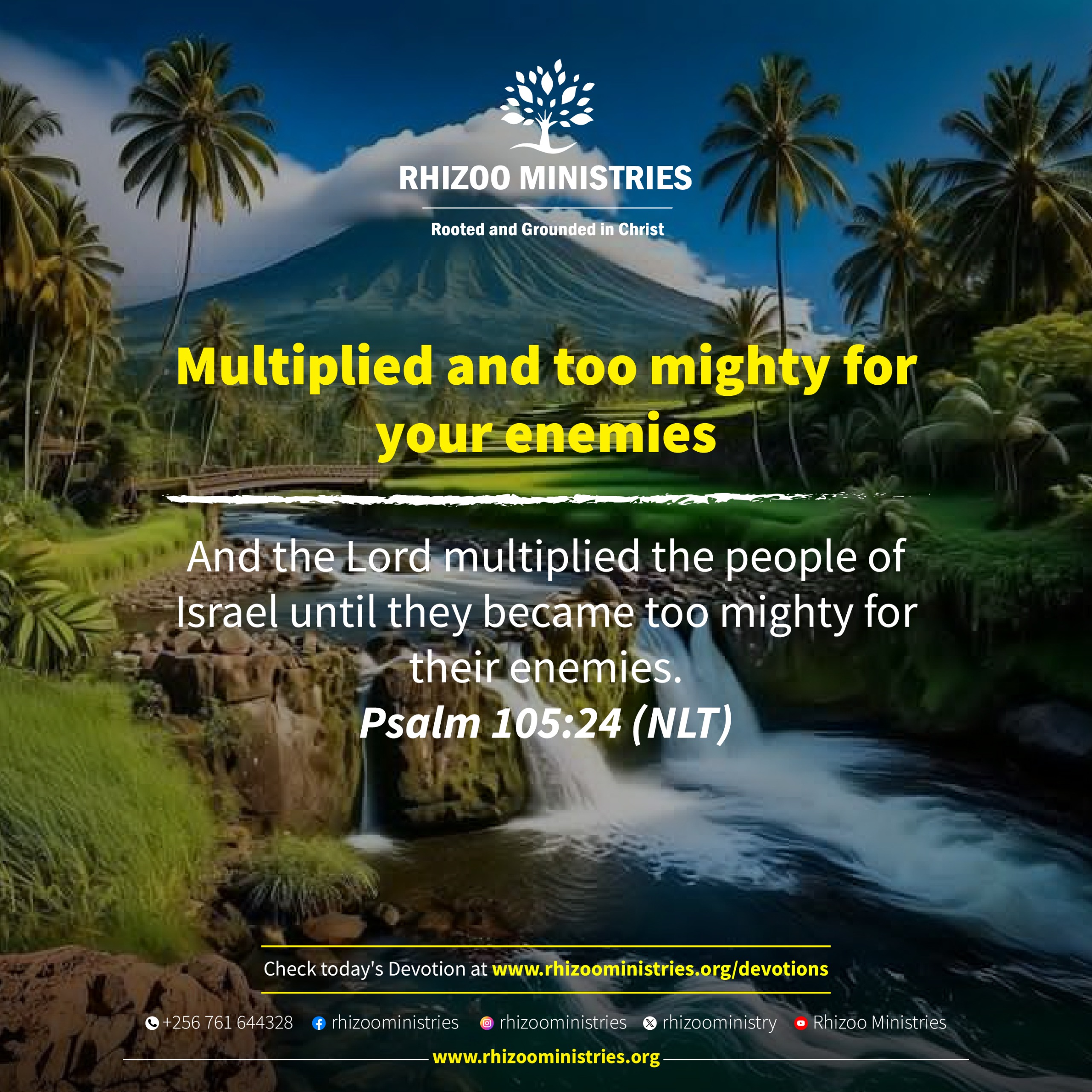 And the Lord multiplied the people of Israel until they became too mighty for their enemies. Psalm 105:24 (NLT)