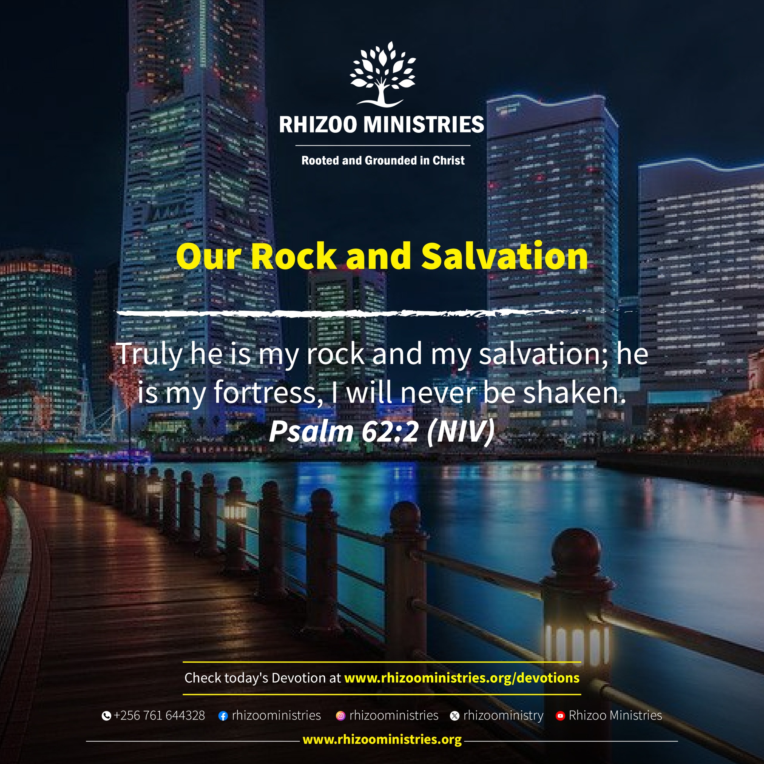 Jesus Christ is the Rock of our Salvation and He likened hearing and acting on His words as building on a rock. Matthew 7:24-25. When the rain, floods, and winds which are the conditions, circumstances, and crises of life hit this house built on a rock, it didn’t fall.Unshaken on the Rock of our Salvation is being built and established in who Jesus Christ is and what He has done for us. The Word of God reveals Jesus Christ as our Savior, redeemer, healer, deliverer. It reveals the finished work of God redeeming and reconciling us with Himself through Jesus Christ on the Cross. Knowing, believing, and acting on this revelation in our daily life is how we stay unshaken on the Rock of our Salvation.