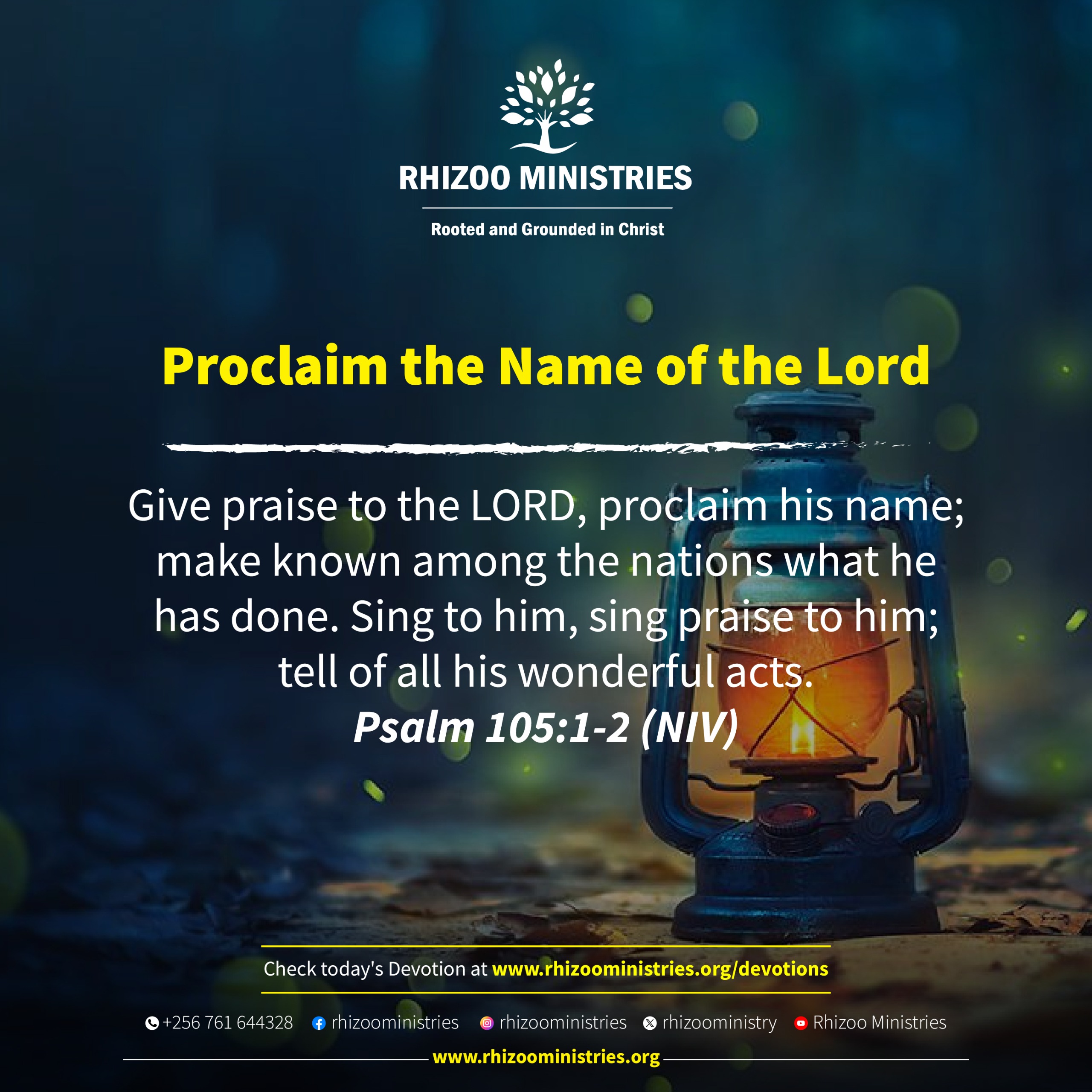 In our scriptural text proclaiming the Name of the Lord is immediately followed by making known what He has done, all His wonderful acts.The implication here is that whenever we proclaim or make known the Name of the Lord, what immediately follows is His wonderful works manifested. When we proclaim the Name of Jesus, Salvation, healing, deliverance, and restoration happen.This is what Jesus meant in talking about signs (God’s wonderful acts) following us who believe. In Jesus’ Name we cast out demons, speak in new tongues, are not hurt by deadly things, and heal the sick – Mark 16:17,18Now we know why everything we do in Word and action should be in the Name of the Lord Jesus – Colossians 3:17.What we say and do in Jesus’ Name releases God’s wonderful acts thus glorifying Him.