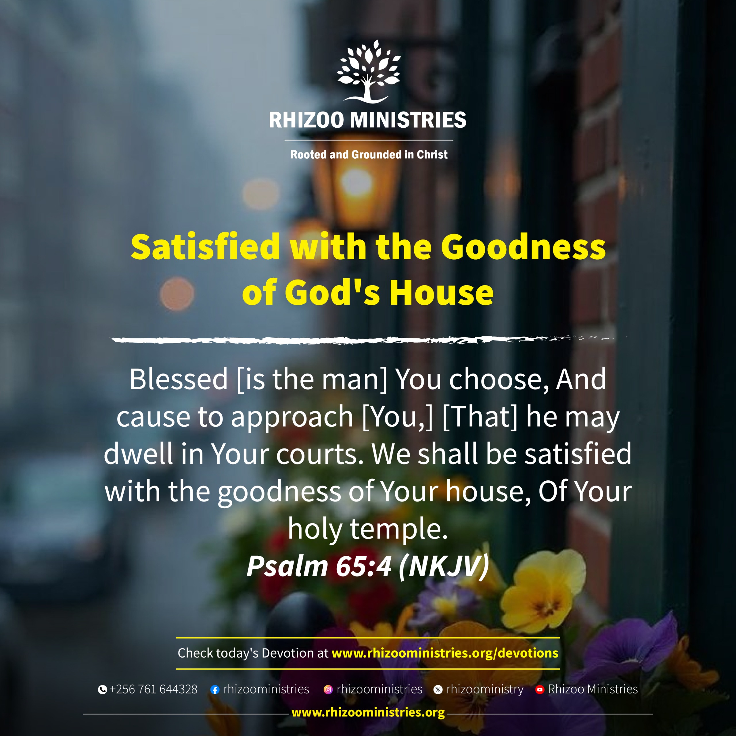 Blessed [is the man] You choose, And cause to approach [You,] [That] he may dwell in Your courts. We shall be satisfied with the goodness of Your house, Of Your holy temple. Psalm 65:4 (NKJV)