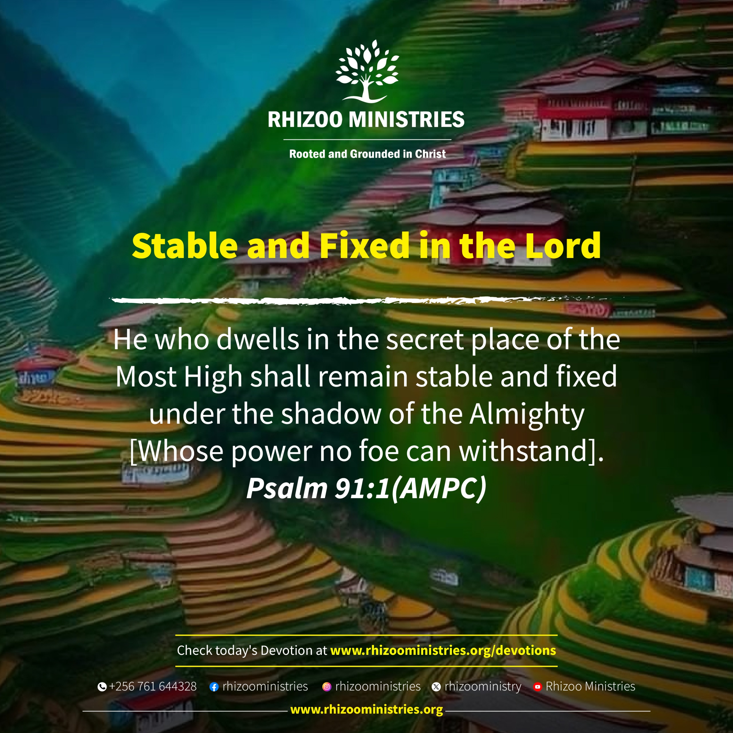 He who dwells in the secret place of the Most High shall remain stable and fixed under the shadow of the Almighty [Whose power no foe can withstand]. Psalm 91:1(AMPC)