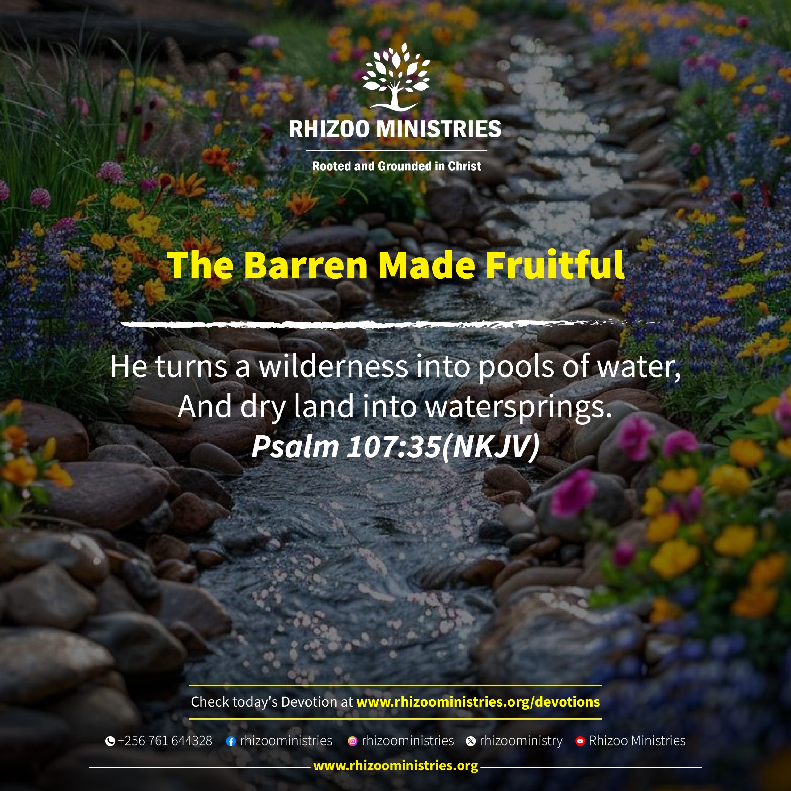 Reading on the next verses we get to see the Lord’s intent in turning a dry wilderness into a well-watered land.That the hungry may establish a dwelling place there – verse 36 That they may plant and have a fruitful harvest there – verse 37 That they under his blessing be multiplied greatly – verse 38 Fruitfulness, productivity, and increase are attributes of God. Barrenness, waste, decrease and loss do not come from God but they are the works of the devil and they came into the world as a result of the sin and fall of man.The God who commanded mankind and creation that “be fruitful multiply and fill the earth” – Genesis 1:22,28 has never rescinded His decree. Though man sinned and let death come into the world, God’s Word and Spirit are still working on earth turning barrenness into fruitfulness, loss into gain, waste into recovery, decrease into increase.Have you lost someone or something, have you experienced waste whether of time, resources or effort, are you experiencing barrenness whether in your body, relationships, work or business? Trust the Lord that His Word and Spirit are bringing recovery, increase, and fruitfulness to abound in every area of your life.