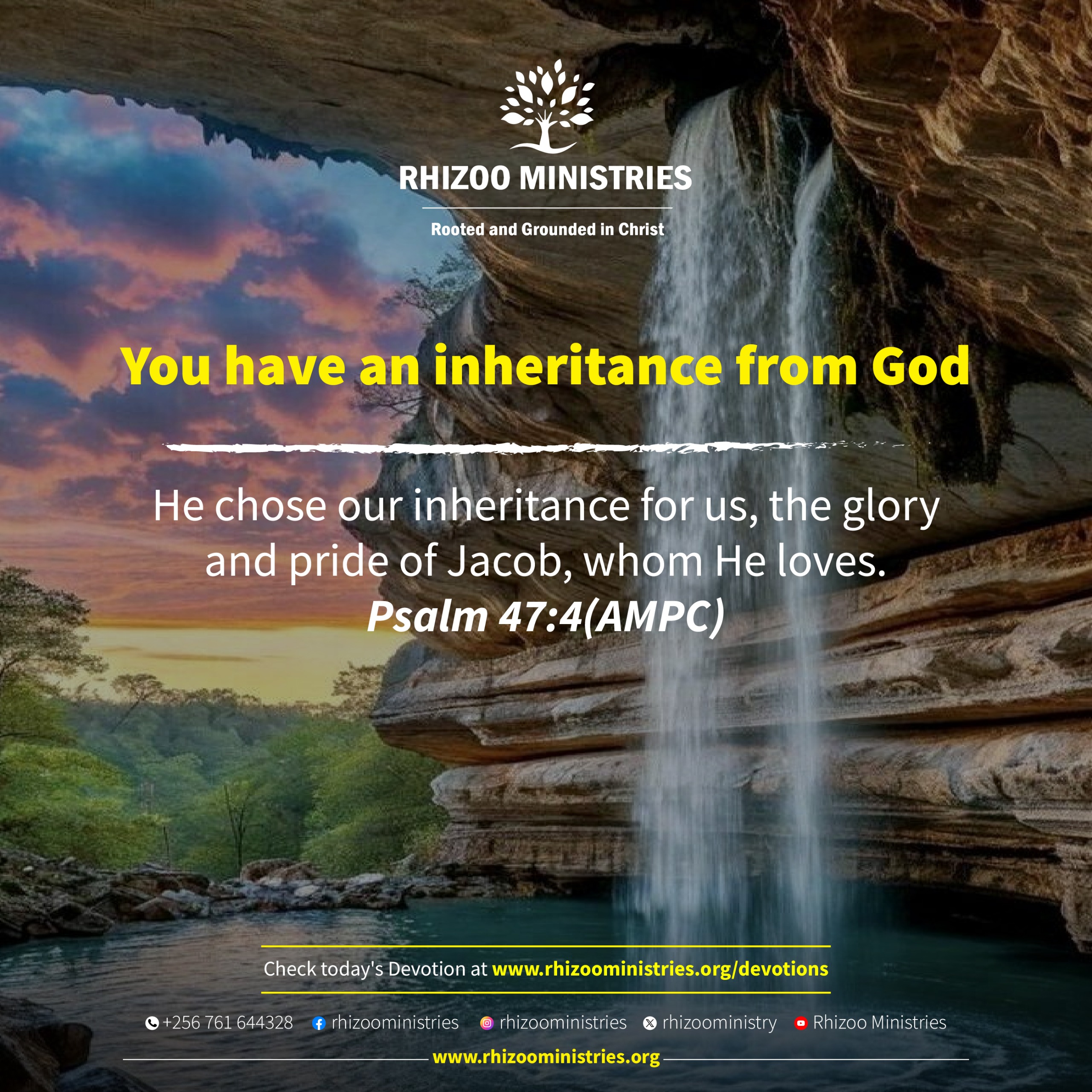 He chose our inheritance for us, the glory and pride of Jacob, whom He loves. Psalm 47:4(AMPC)
